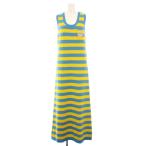 グッチ GUCCI 23AW フレアワンピース マキシ ロング ニット ノースリーブ Uネック アニマル刺繍 ボーダー柄 ウール混 M 青 ブルー 黄色