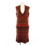 エルメス HERMES ニットワンピース タイト ひざ丈 ノースリーブ Vネック 総柄 カシミヤ混 アルパカ混 モヘヤ混 シルク混 36 茶