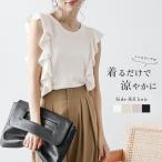 フリル ニット ノースリーブ フェミニン ラウンドネック サマーニット トップス 【lstpss24-284】【即納:1-5営業日】【送料無料】ユ込2