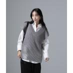 ベスト ニットベスト ノースリーブ ケーブル編み リブ編み セーター 重ね着 レイヤード クルーネック ゆったり レディース 値下げ 送料無料