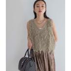 タンクトップ ノースリーブ 「セットアップ対応」ジオメトリックフレンチスリーブニットタンク レディース