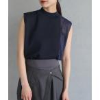 tシャツ さらり、大人こなれ感。オーガニックコットン ノースリーブ シンプル ハイネックリブニット レディース