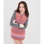 トップス ニット セーター ノースリーブ セットアップ フェミニン 冬 黒 レディース SALE Honeys ハニーズ フェザーベスト