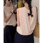 ニット セーター バックカシュクールリブ編みノースリーブサマーニットトップス レディース