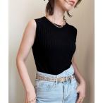 タンクトップ ノースリーブ ノースリーブリブニット レディース