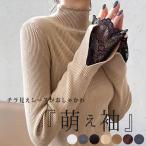 ニット セーター 「至福のカヌレニット」レイヤード風ハイネックボリュームスリーブ リブニットプルオーバー レディース