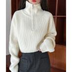 ニット セーター ハイネック ハーフジップ ニット クロップド丈 レディース レディース