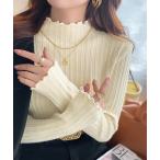 ニット セーター 「26SS新色追加」もちもちタッチ シアーフリルハイネックリブニット レディース