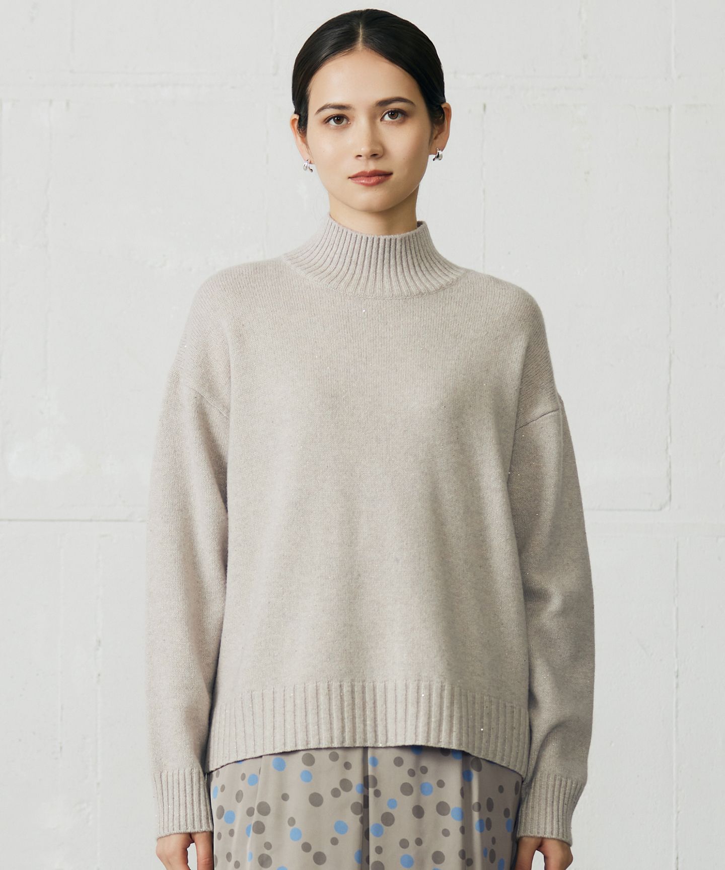 自由区(ジユウク)/【洗える】ウールカシミヤブレンドスパンコールハイネック ニット