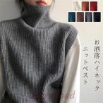 ニット ベスト ハイネック ニット ベスト レディース 秋冬 ニットベスト タートルネック トップス ノースリーブ 大きいサイズ リブ ニットトップス セーター