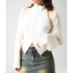 ニット セーター A'GEM/9 × .kom 「.KOM/ドットケーオーエム」 ニットハイネックZIPトップス レディース