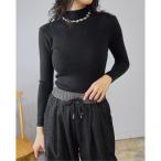 ニット セーター 袖パールプチハイネックリブニットプルオーバー レディース