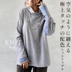 ニットトップス 空気のように纏える極上タッチの配色ニットトップス グレー 秋冬 ハイネック タートルネック ミックスカラー OTONA 40代 50代 60代