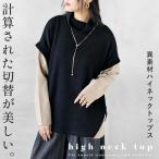 ニットトップス ハイネック 計算された切替が美しいハイネック異素材トップス ブラック 秋ニットソー ニット OTONA 40代 50代 60代