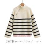 ニット トップス レディース 秋冬 セーター ボーダー柄 ビックカラー タートルネック ハイネック オーバーサイズ プルオーバー ドロップショルダー タートル
