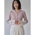 ニット セーター レーススリーブハイネック釦リブニット レディース
