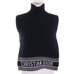 極美品◎Christian Dior クリスチャンディオール 114S48AM725 コットン100% ロゴボタン ボーダー柄 ハイネック 半袖ニット ホワイト ブラック 38 イタリア製 正規品 レディース【中古】