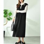 ワンピース ソフトダンボールニットフレンチスリーブプルオーバーVネックジャンスカセット