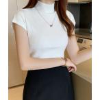 ニット レディース フレンチスリーブ プチハイネック 無地 単色 薄手 重ね着 着回し プルオーバー トップス サマーニット おしゃれ かわいい オフ