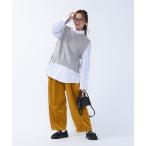 ニット セーター 配色レイヤード風ボリュームスリーブ リブニットプルオーバー レディース