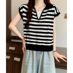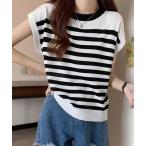 ニット セーター フレンチスリーブサマーニット ボーダー柄 レディース