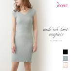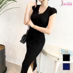 ニットワンピース フレンチスリーブ 夏 スリット ノースリーブ ワンピース ニット リブ 半袖 タイトワンピース ブラック ネイビー フリーサイズ JOCOSA 9219