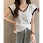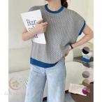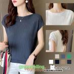 ニット セーター 韓国新作 フレンチスリーブ サマーニット レディース