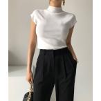 ニット セーター フレンチスリーブハイネックサマーニット レディース
