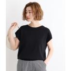 アクアガレージ aquagarage 前後2wayフレンチスリーブリブニットトップス 春 夏 秋 (ネイビー)