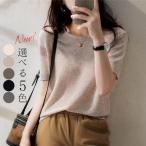 サマーニット ニット レディース トップス プルオーバー セーター ライトニット 夏ニット フレンチスリーブ 半袖 クルーネック 丸首 ニットベスト ラメ入れベ