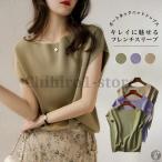 tシャツ スクエアネック ラグラン切り替え フレンチスリーブ サマーニット レディース