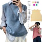ニット ベスト 春秋冬 レディース ニットベスト トップス 丸首 ラウンドネック フレンチスリーブ セーター 重ね着 レイヤード ゆるニット