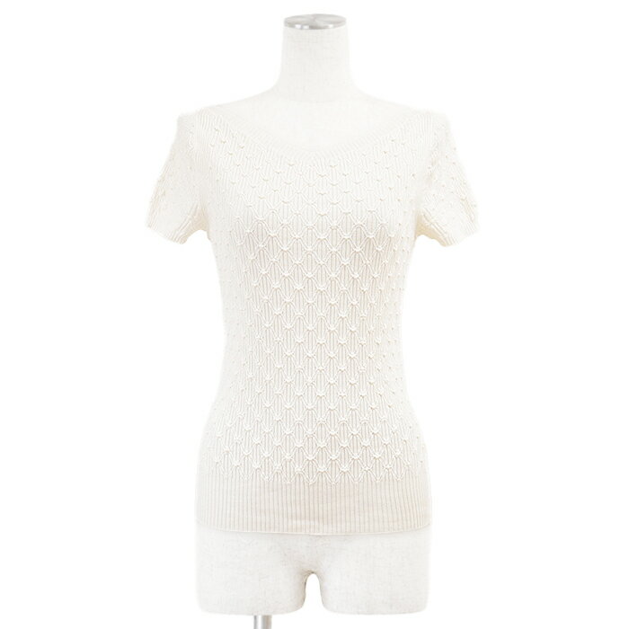 【新品同様】CHANEL シャネル ニット P58467 リブ × ダイヤ コンビネーション フレンチスリーブ コットン/シルク シグネチャー ロゴ COCOマーク クリアチャーム プルオーバー トップス レディース サイズ 38 オフホワイト イタリア製 カール・ラガーフェルド期【中古】