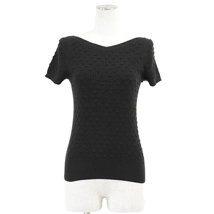 【新品同様】CHANEL シャネル ニット P58467 リブ × ダイヤ コンビネーション フレンチスリーブ コットン/シルク シグネチャー ロゴ COCOマーク クリアチャーム プルオーバー トップス レディース サイズ 38 ブラック 黒 イタリア製 カール・ラガーフェルド期【中古】