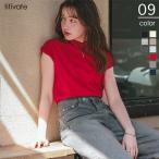 ニット レディースファッション フレンチスリーブ リブニット 半袖 プチハイネック 無地 トップス フラッタースリーブ コーデ 春夏秋