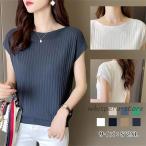 ニット セーター 韓国新作 フレンチスリーブ サマーニット レディース