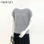 モックネック和紙ニットベスト 177-12451 indiviインディヴィ フレンチスリーブ ノースリーブ ニットソー キレイ目 グレー 夏 涼しい 春秋 洗える 仕事 お洒落