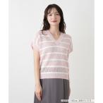 Leilian ボーダーVネックフレンチスリーブニット レリアン トップス ニット ホワイト ピンク【送料無料】