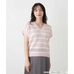 Leilian / レリアン ボーダーVネックフレンチスリーブニット