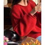 ニット セーター ボリュームスリーブ ラウンドニットトップス レディース