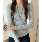 ニット セーター ジャストサイズできれいめシルエット。長袖ラウンドネックリブニットトップス レディース レディース