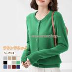 カーディガン レディース サマーニット ラウンドネック クルーネック ニット オフィス 長袖