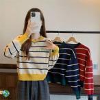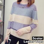 ニット 長袖 レディース 女性 婦人服 トップス セーター ラウンドネック 丸首 ボーダー柄 ブロックチェック おしゃれ カジュアル