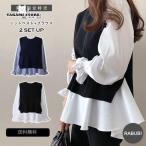 ニット セーター Vネック×ラウンドネックハイゲージ六分袖ニットトップス レディース