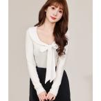 ニット セーター ラウンドネック ボウタイ リボン リブニット トップス レディース