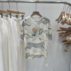 ニット サマーニット アニマル 花柄 ボタニカル 半袖 五分袖 ラウンドネック 薄手 柔らか 個性的