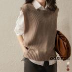 ベスト ジレ フロントボタンラウンドネックニットベスト レディース