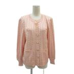 レリアン Leilian ニットカーディガン シルク 11 ピンク ケーブル編み ラウンドネック ミドル丈 /YS3 ■GY60 レディース