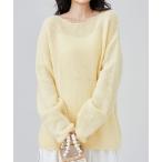【半額クーポン対象】ラウンドネックニット 大人カジュアル ぽわん袖 トップス ニット セーター くすみカラー 長袖 ルーズ レディース オシャレ トレンド 人気 プチプラ 韓国ファッション【lesaw25-dk12】【予約販売:15-20日】【送料無料】メ込4