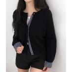 ニット セーター Y2K レイヤード風ラウンドネックボタンチェックカラーカーディガン レディース